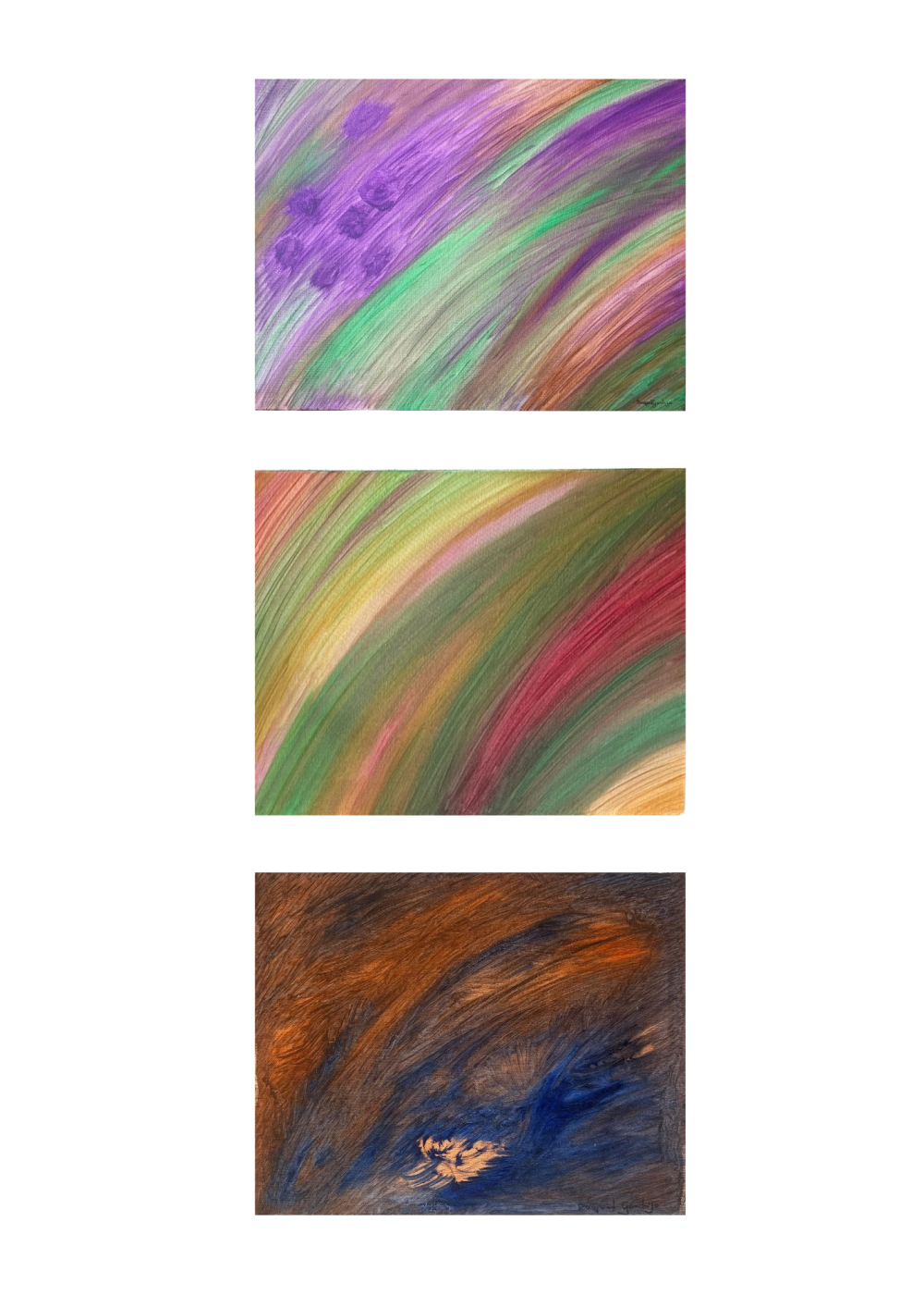 1. Lyrics, 2022. Oil on canvas. 30x40 cm. 2. Colors of the wind, 2022. Oil on canvas. 30x40 cm. 3. Sem forma, 2023. Egg tempera and oil...